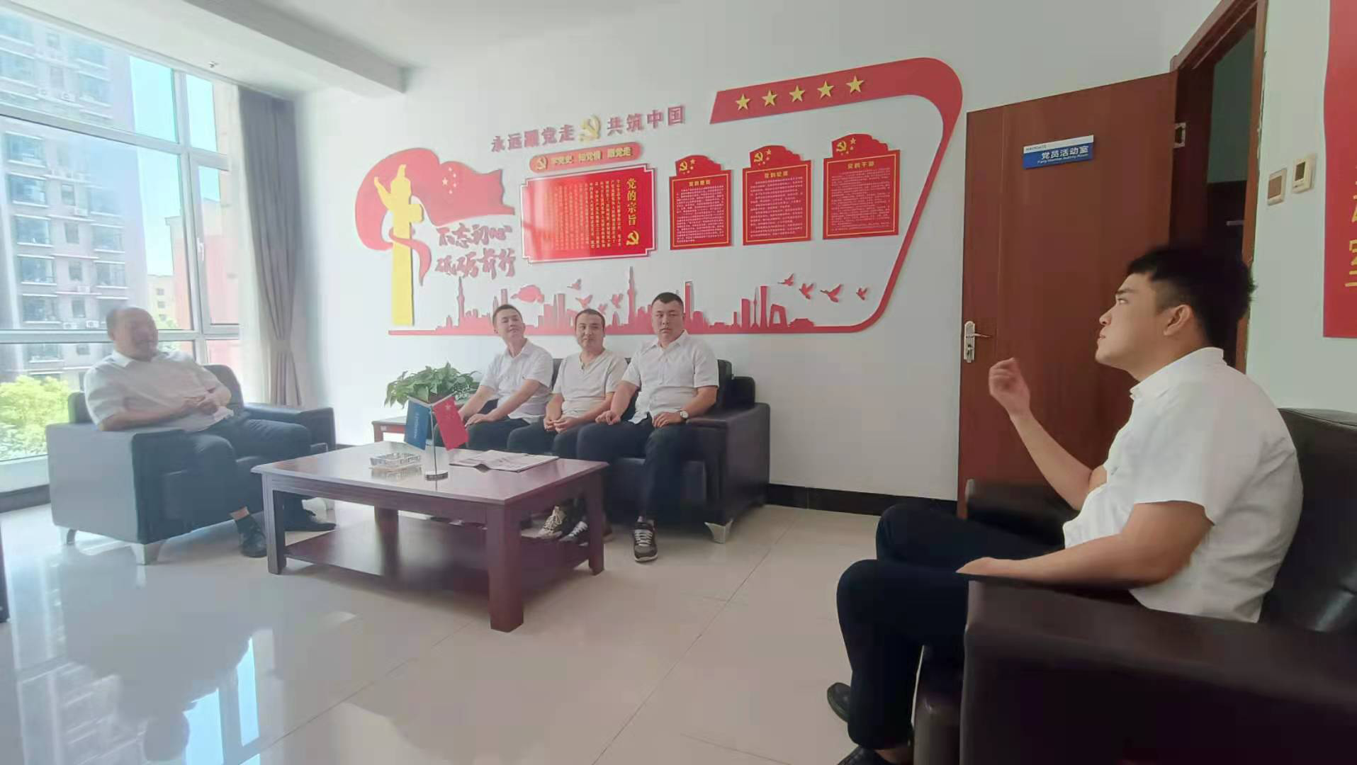 為進一步弘揚擁軍優(yōu)屬光榮傳統(tǒng),持續(xù)做好擁軍工作,充分調動我公司轉業(yè)復員退伍軍人的工作積極性,8月2日,我支部召開慰問轉業(yè)復員退伍軍人座談會。黨支部書記董事長趙立新,總經理李勃燾和三名轉業(yè)復員退伍軍人楊文軒、李銘浩、郝晉魁參加座談會。