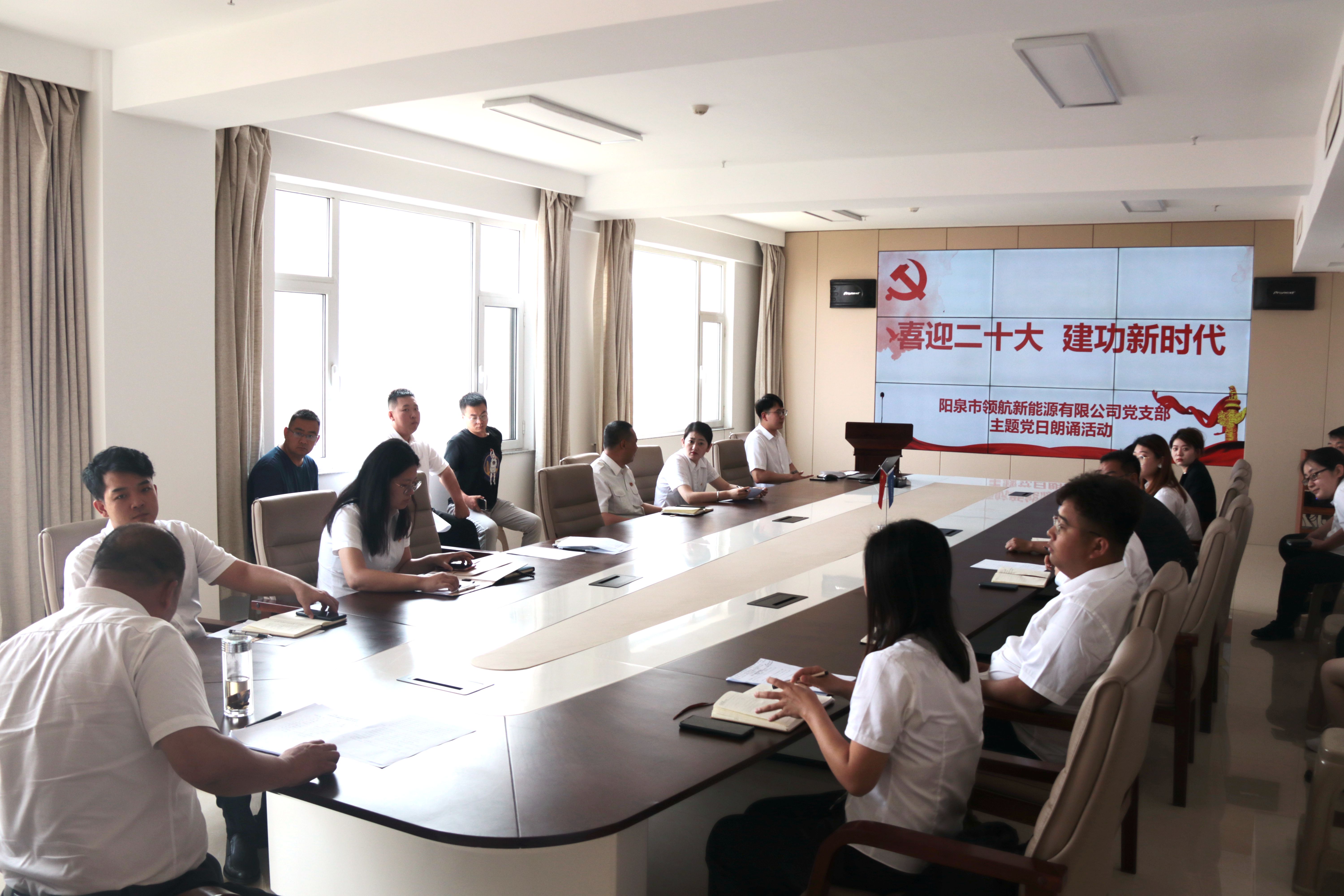 6月9日上午,陽泉市領航新能源有限公司黨支部開展“喜迎二十大 建功新時代”主題黨日朗誦活動,進一步激發(fā)廣大黨員不忘初心使命、永葆政治本色、為黨和人民事業(yè)增添正能量而繼續(xù)奮斗的豪邁熱情。